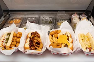 Admission to visit Vicky’s Doghouse Cafe is free and parking is conveniently available in the adjacent lot free for the first hour and $2 per hour thereafter.