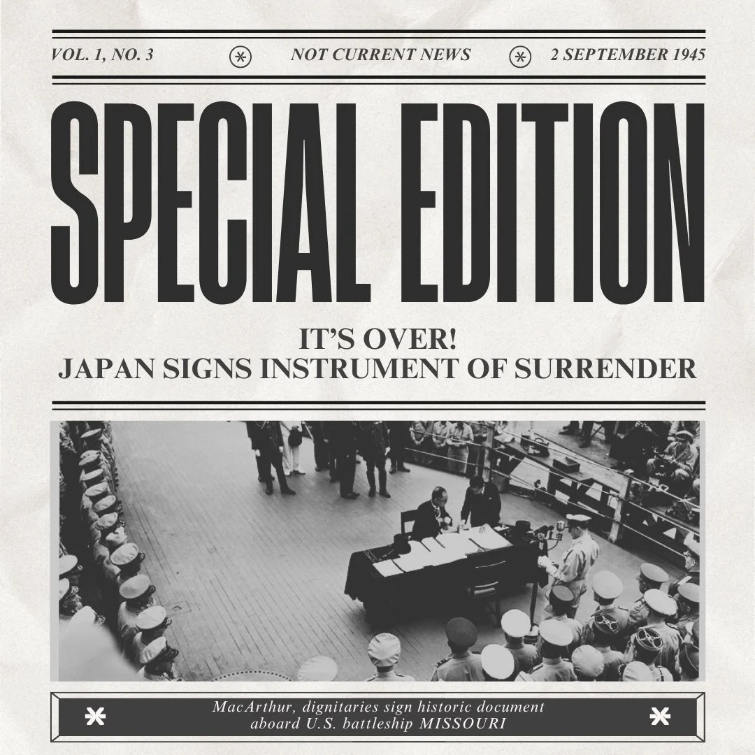As we celebrate the 80th anniversary of the end of World War II, come with us on an imaginary journey through what could have been newspaper headlines in the week surrounding that momentous occasion.