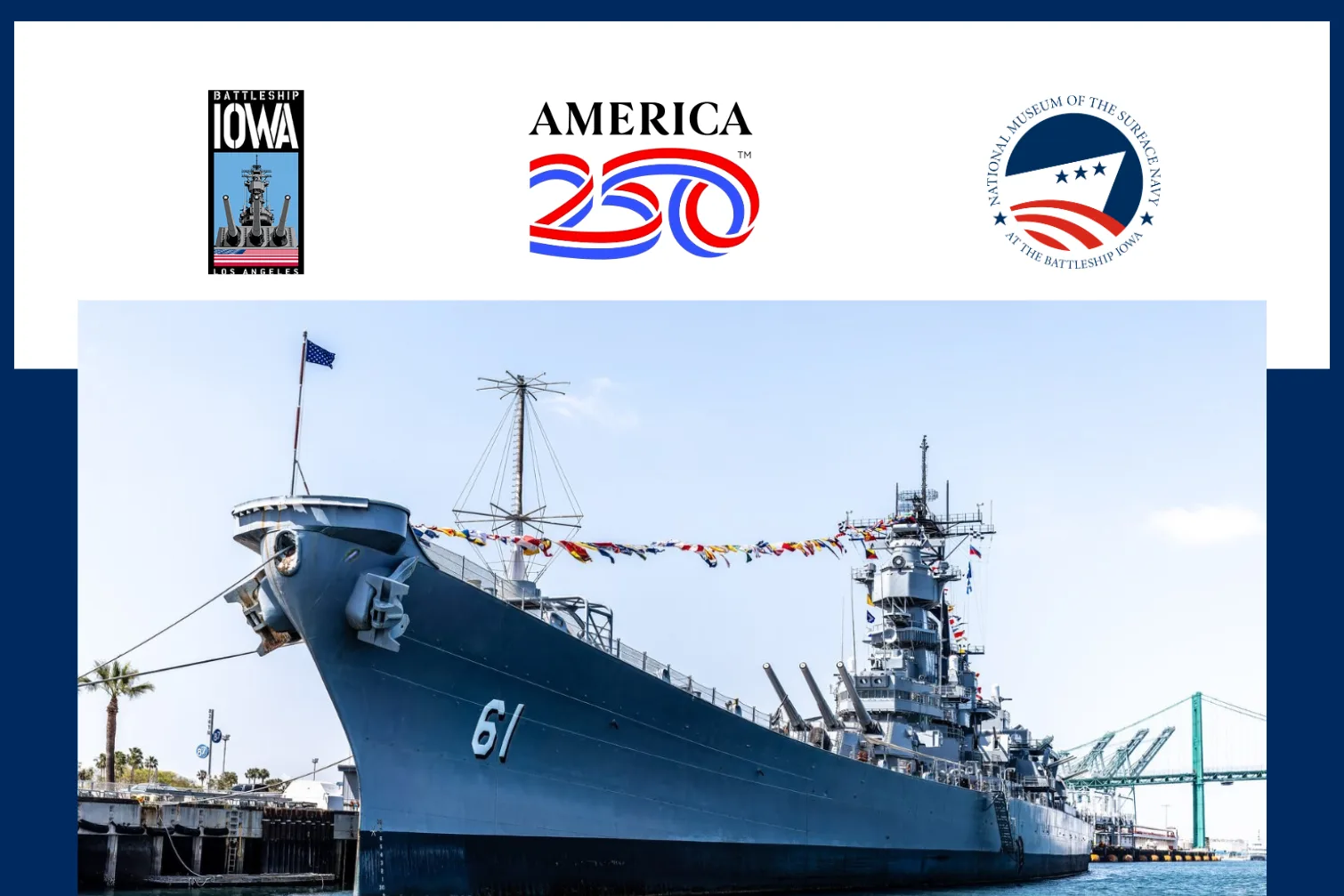 “America’s 250th anniversary is an opportunity to honor the service and innovation that have helped secure our nation’s freedom and prosperity,” said Jen Condon, Executive Vice President at America250. “Pacific Battleship Center’s work to bring maritime history to life – from the Battleship IOWA to Los Angeles Fleet Week – offers meaningful ways for communities to connect with this legacy as we approach the Semiquincentennial.”